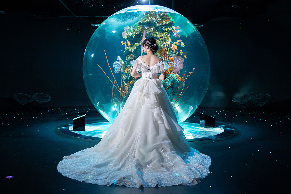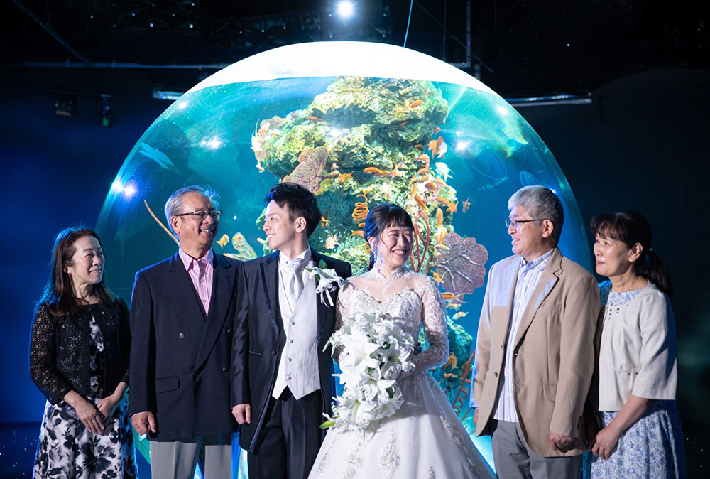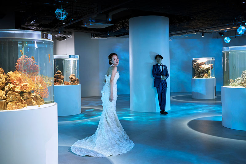 新郎新婦様のために水族館を完全貸切でご用意。人目を気にせずリラックスした自然な状態でお過ごし頂けます。