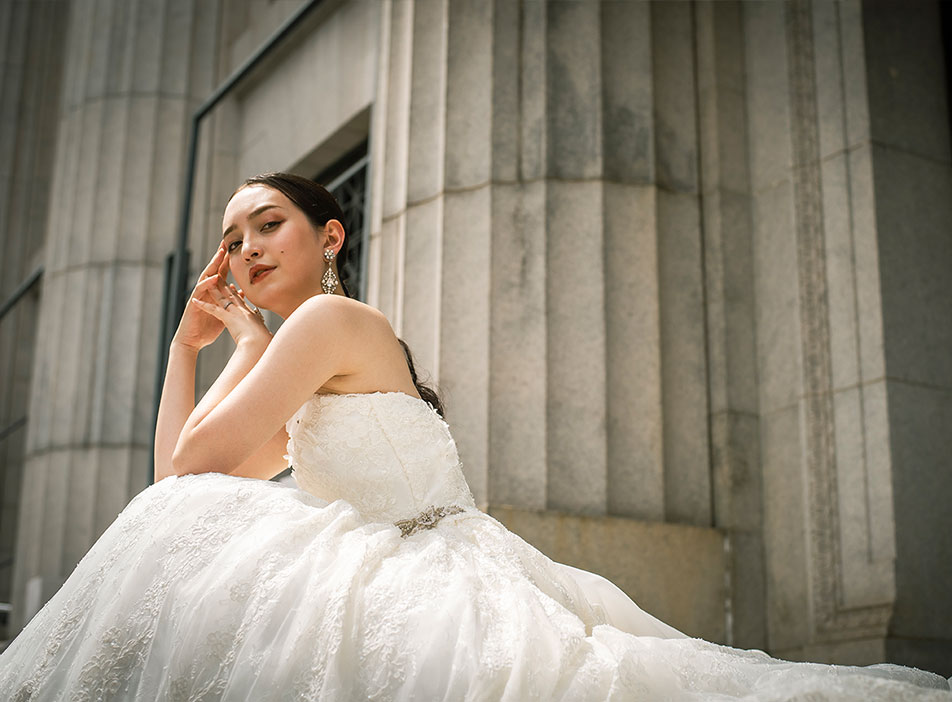華やかなバックスタイルや、細部まで施された刺繍・カットワークは身に纏うだけで高揚感溢れるひとときに。